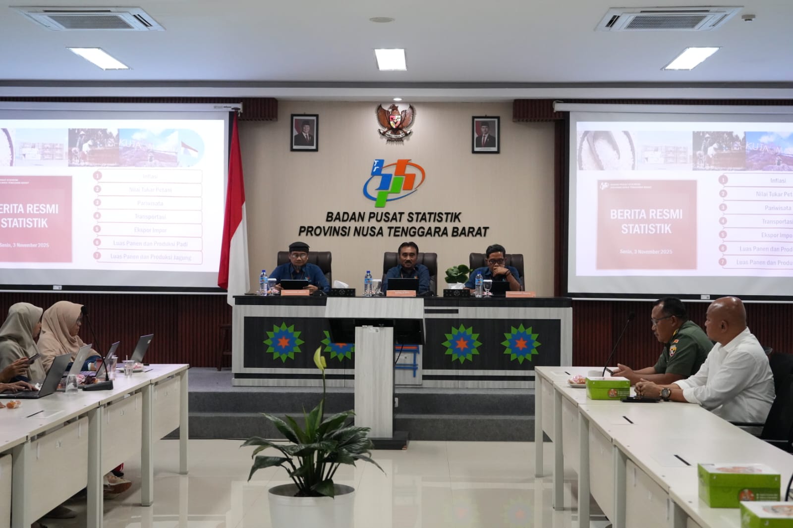 Kepala BPS NTB, Dr. Drs. Wahyudin, M.M menjelaskan bahwa inflasi NTB pada Oktober 2025 sebesar 0,35 persen (month to month), sedikit lebih tinggi dibanding angka nasional yaitu 0,28 persen, hal ini berdasarkan beberapa indikator pergerakan ekonomi di NTB.